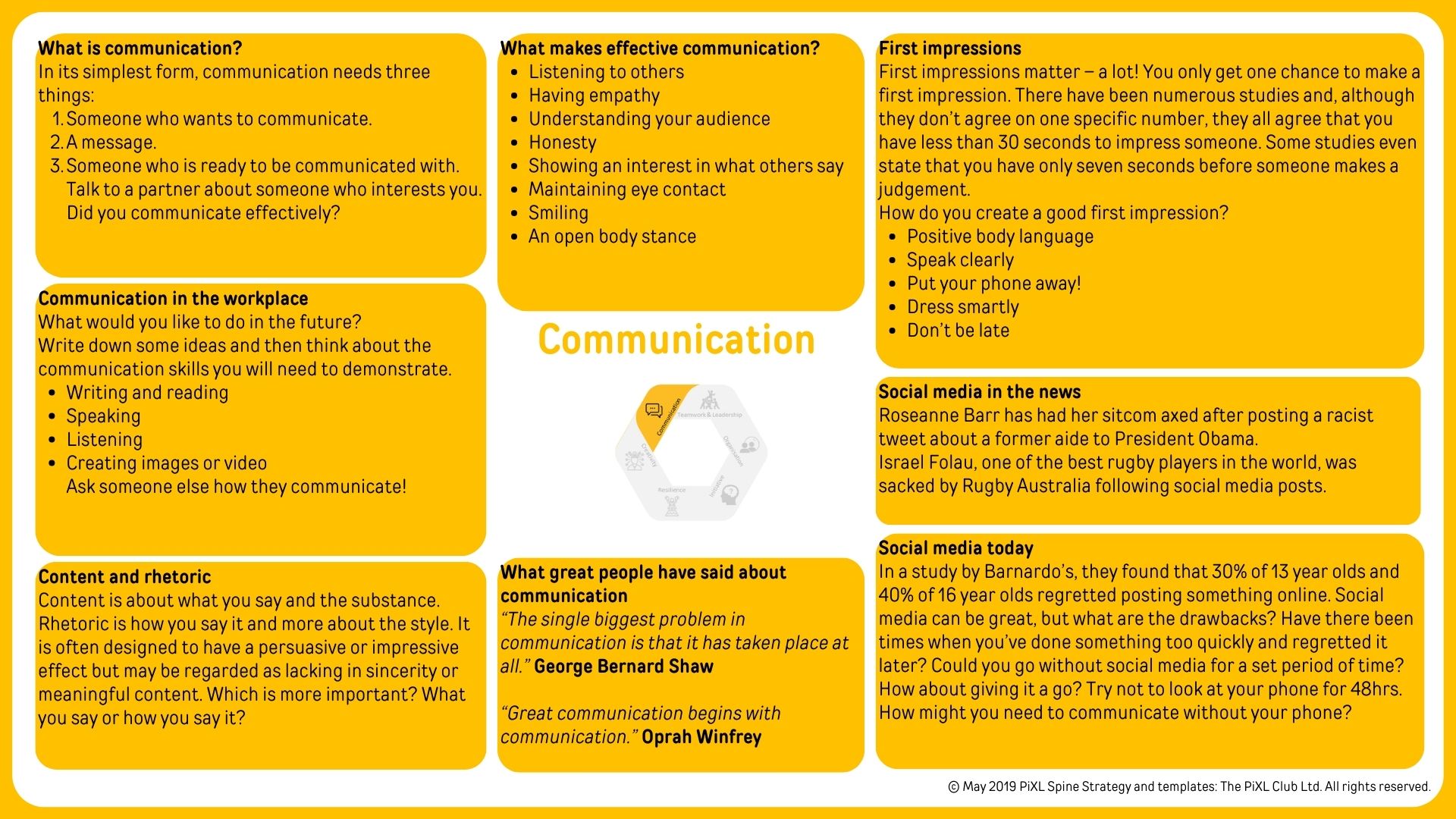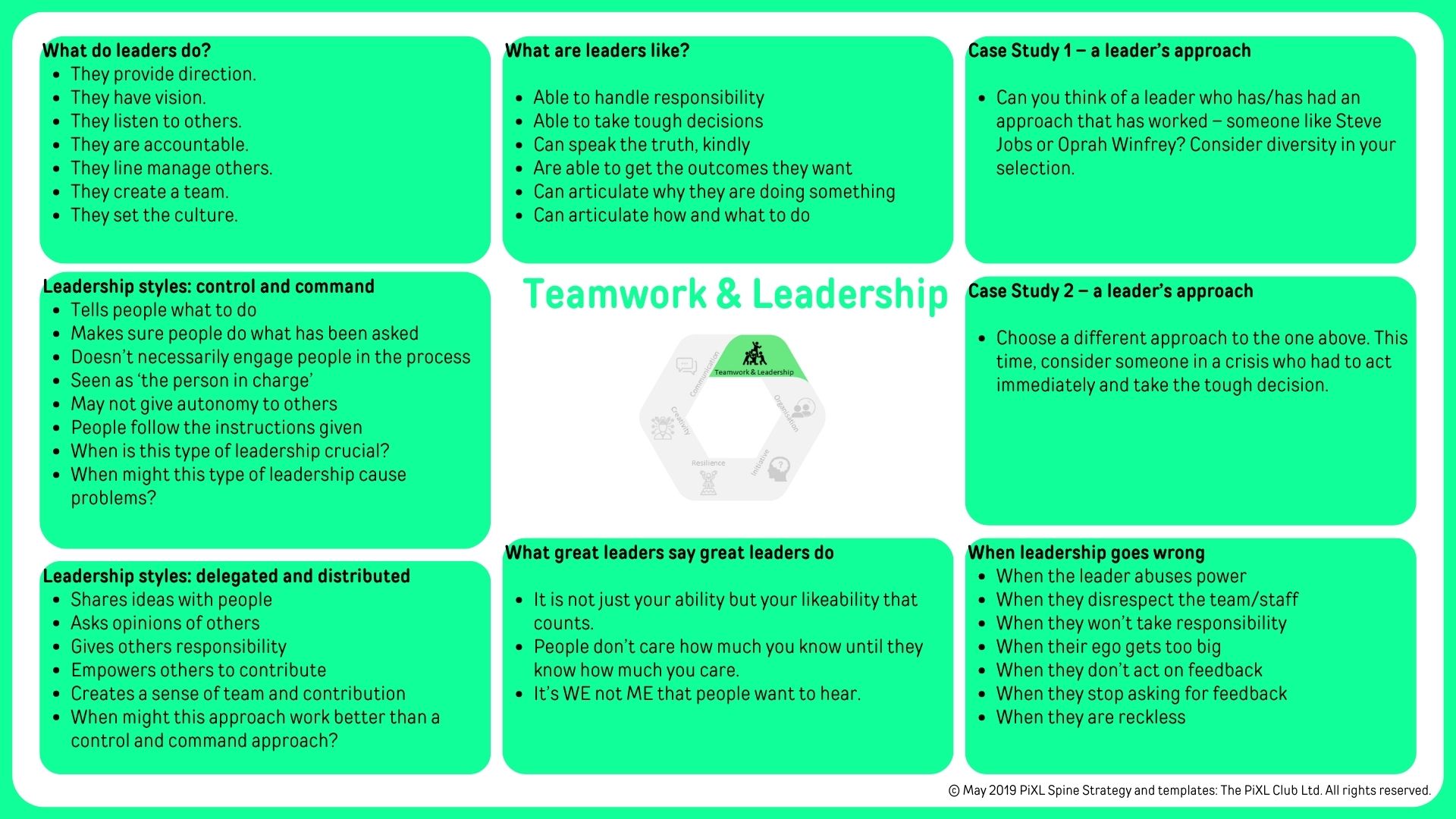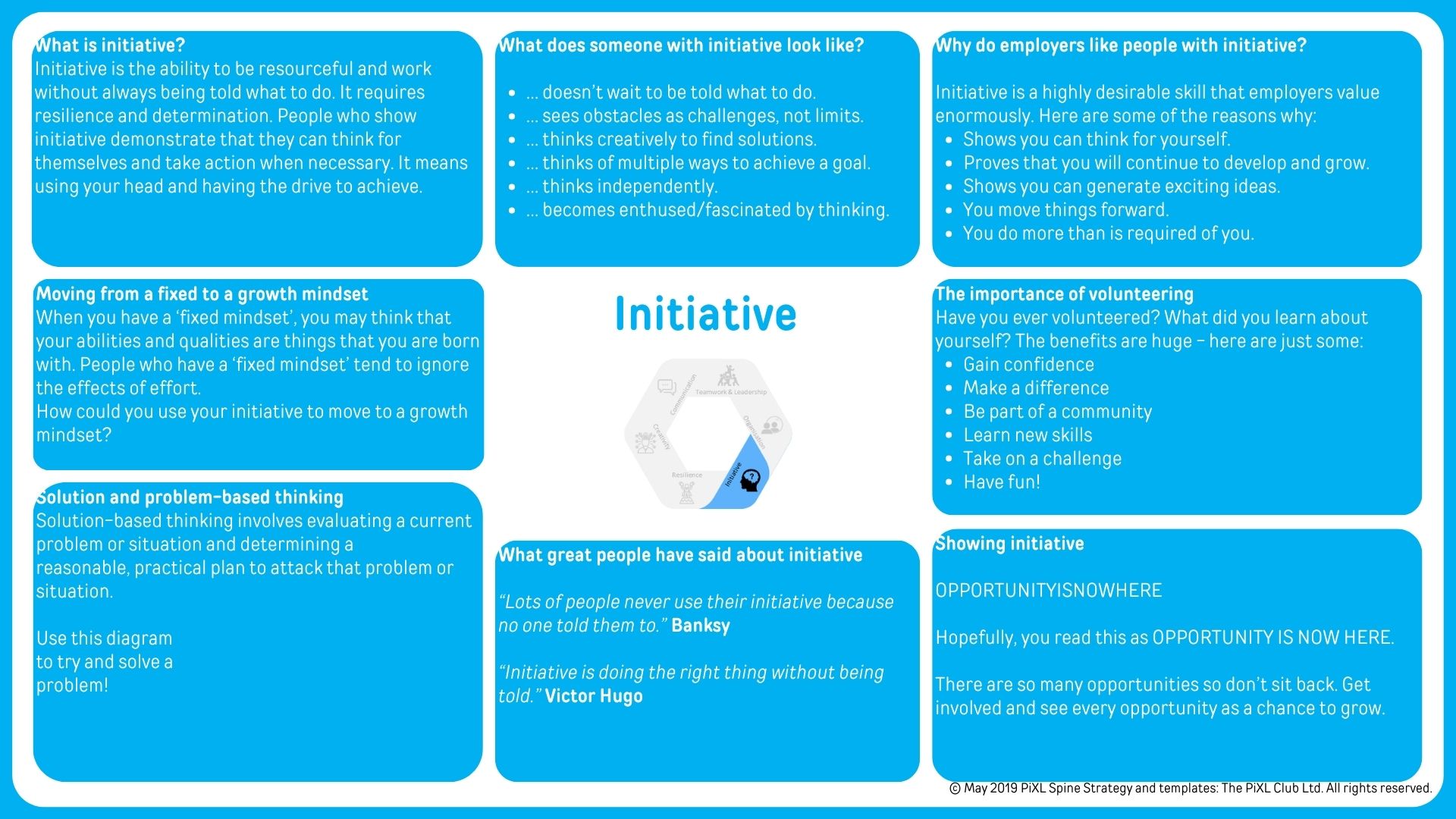 Teamwork and Leadership, Organisation, Initiative, Resilience, Communication, Creativity